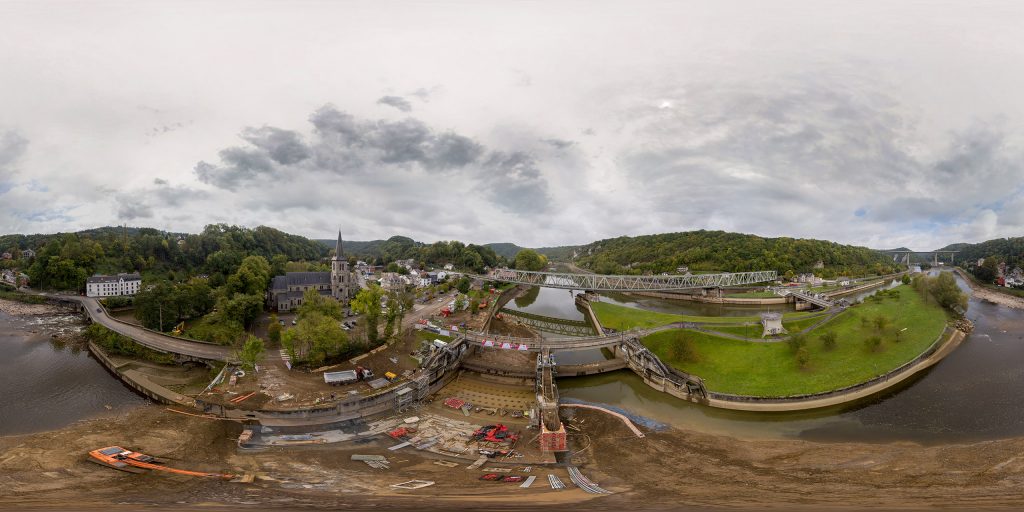 4 Ecluses de la Haute-Meuse (Rivière, Houx, Dinant et Anseremme) sont en travaux afin d’y installer des nouvelles centrales hydroélectriques. Elles seront posées sur des dalles en béton réalisées sur le lit du fleuve. Et pour cela, il faut travailler à sec et réaliser un batardeau, une zone étanche par rapport au cours d’eau. Quand toutes les centrales seront équipées et en fonctionnement, elles fourniront l’électricité de 18000 ménages.