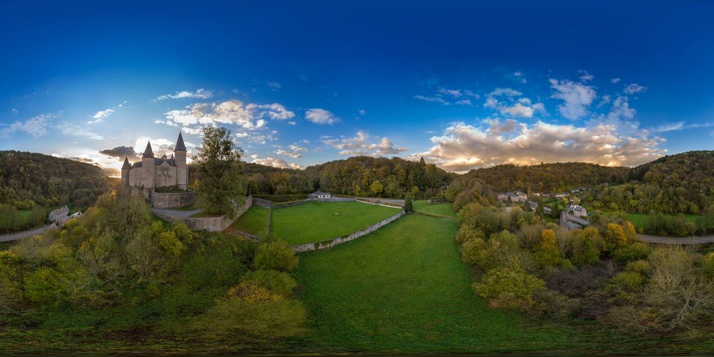 Le château de Vêves, sis au bord d’un petit affluent de la Lesse, se trouve à quelques kilomètres du village de Celles, maintenant intégré à la commune de Houyet, dans la province de Namur (Région wallonne de Belgique). Les origines de ce château-fort sont anciennes. En effet, Pépin de Herstal y avait déjà élevé une villa dans la seconde moitié du VIIe siècle afin d’être plus près de l’ermitage de Saint Hadelin à Celles. La villa fut ensuite transformée en une petite forteresse par ses différents successeurs au IXe siècle. Cette forteresse fut rasée en 1200 et reconstruite en 1220 par la famille Beaufort qui en fit un château plus puissant. Détruit par les Dinantais au XVe siècle et rétabli aussitôt, le château eut encore à subir les ravages causés en 1793 par les révolutionnaires français.